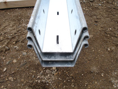 Giraffe Bracing's Straight back wall supports are made of 14 gauge, rolled edge, galvanized steel. The Giraffe ICF Bracing straight backs stack together, making storage and transportation easier. The rolled edges make it easier on the hands and tougher against bending. Slots in the braces are every 4" o.c. and will work with all ICF brands.